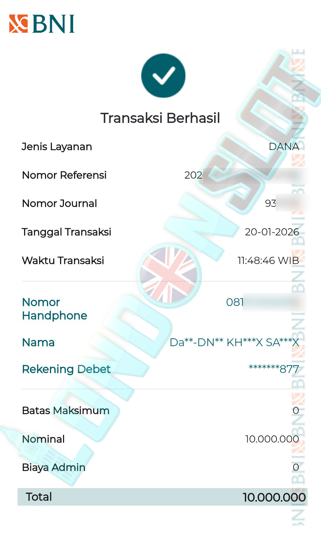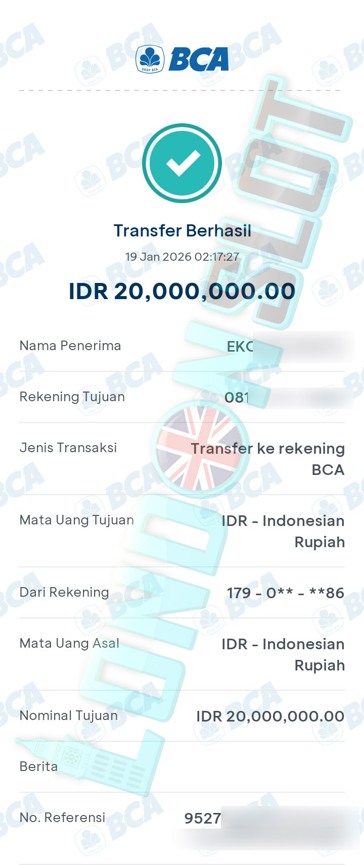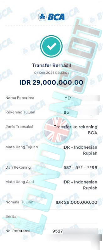 BUKTI TRANSFER JP MEMBER LONDONSLOT