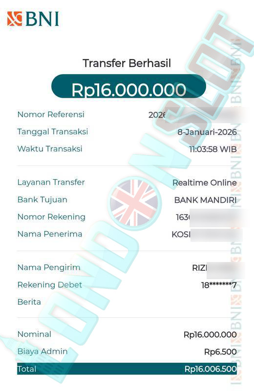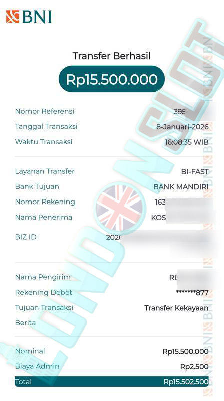 BUKTI TRANSFER JP MEMBER LONDONSLOT