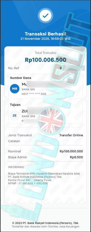 BUKTI TRANSFER JP LONDONSLOT