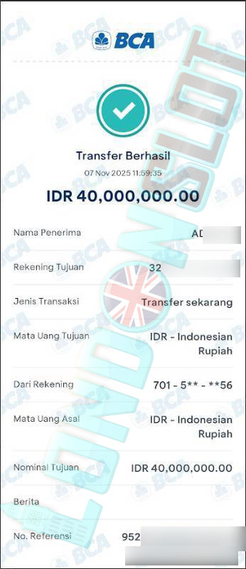 BUKTI TRANSFER JP MEMBER LONDONSLOT