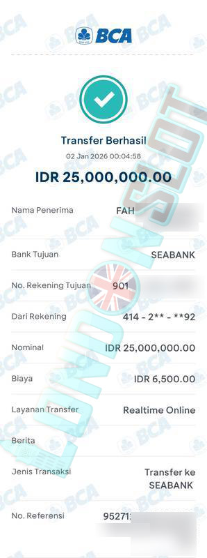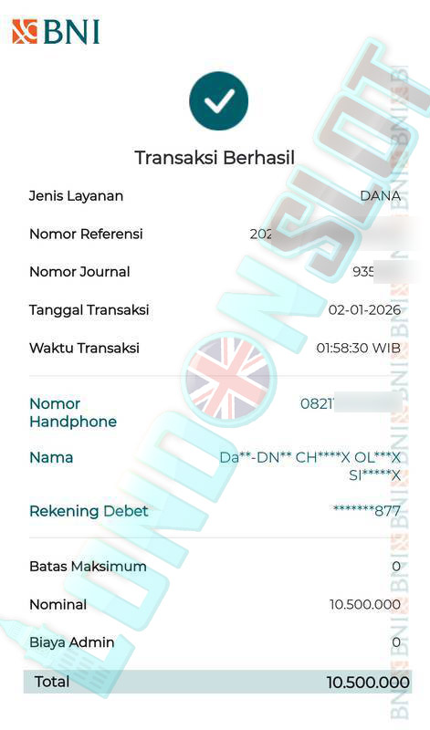 BUKTI TRANSFER JP LONDONSLOT