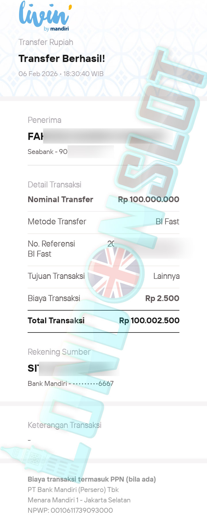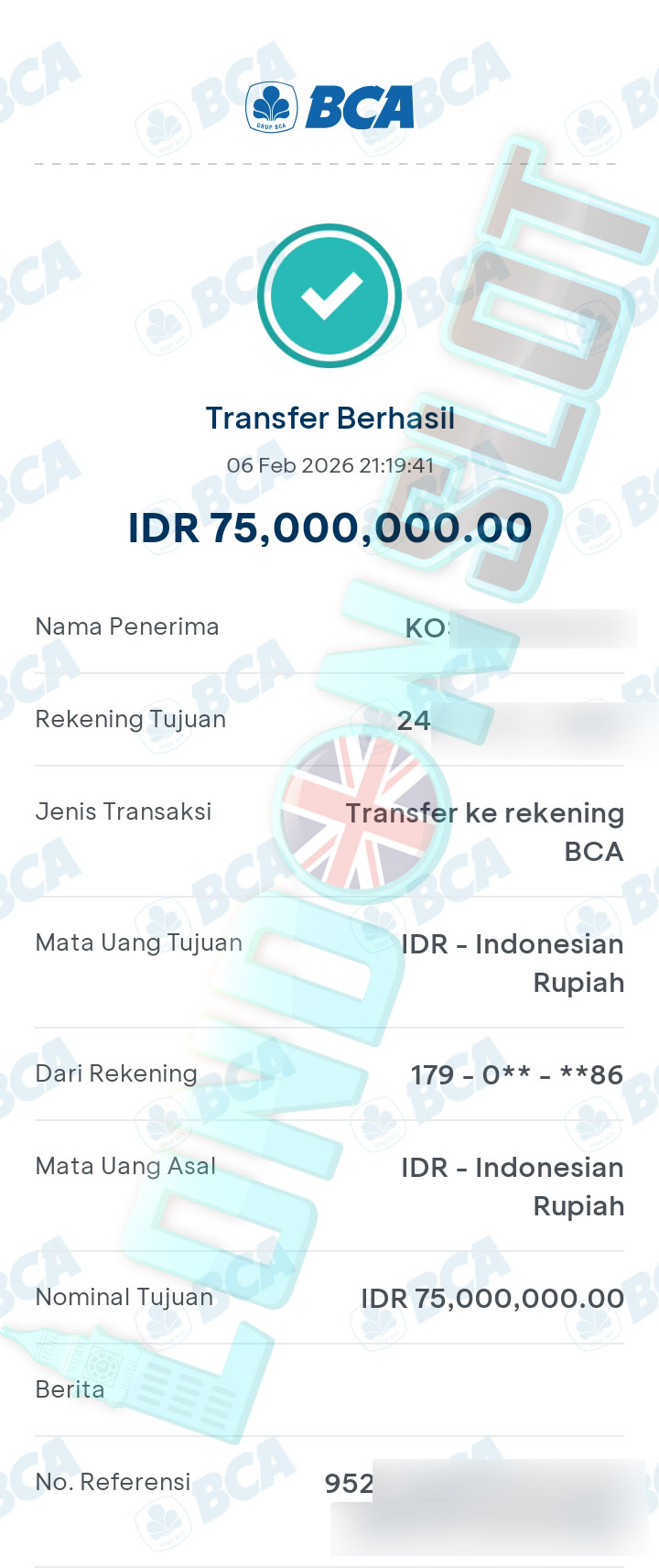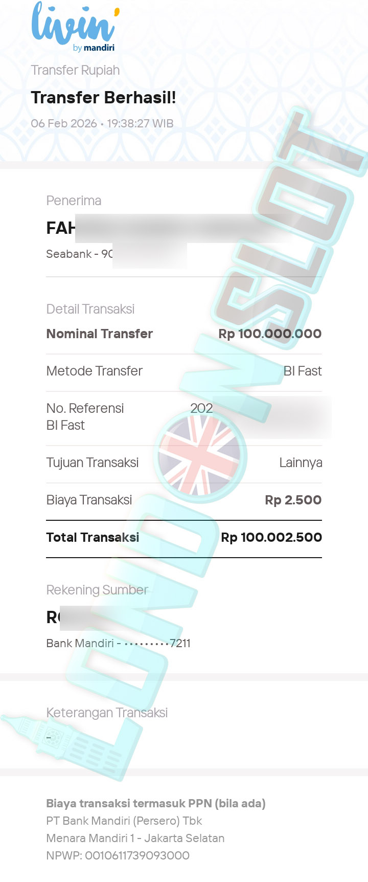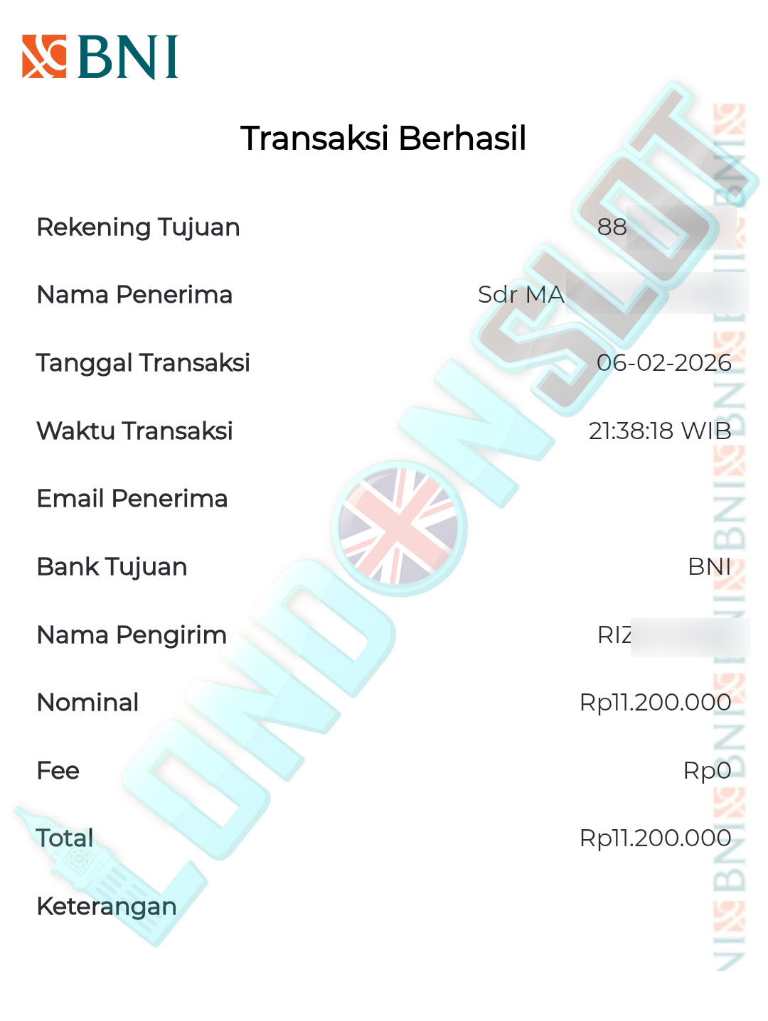 BUKTI TRANSFER JP LONDONSLOT