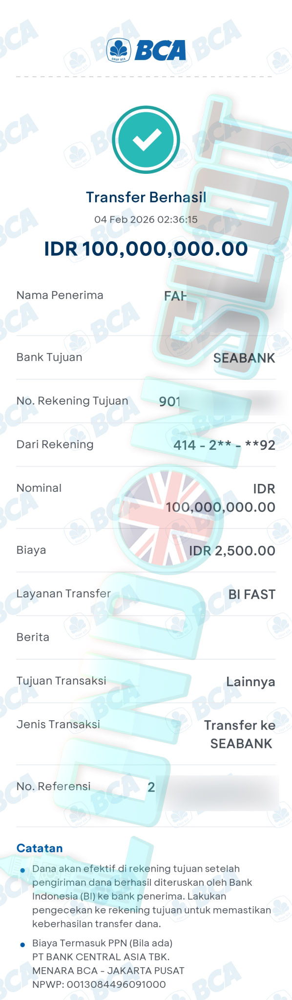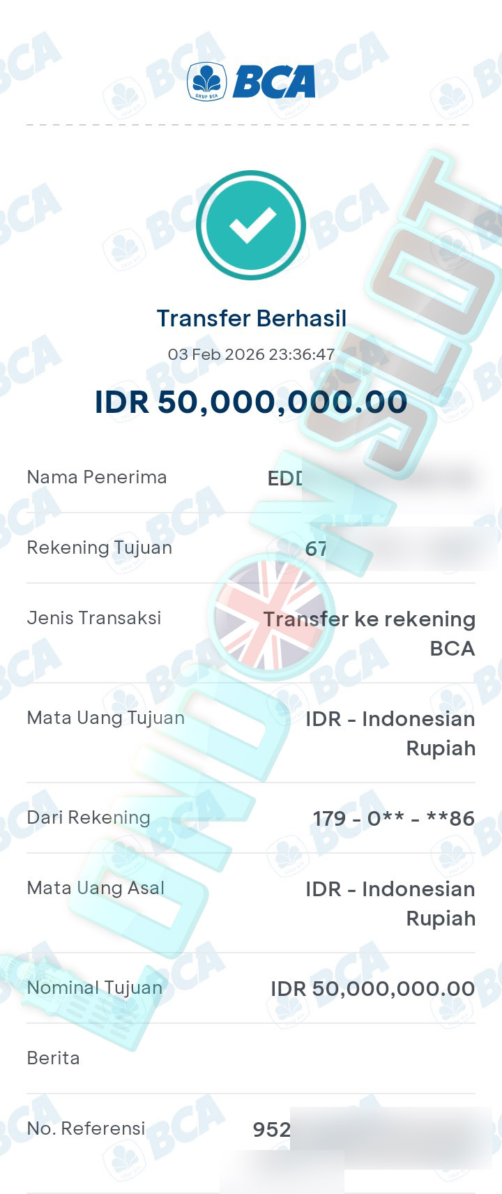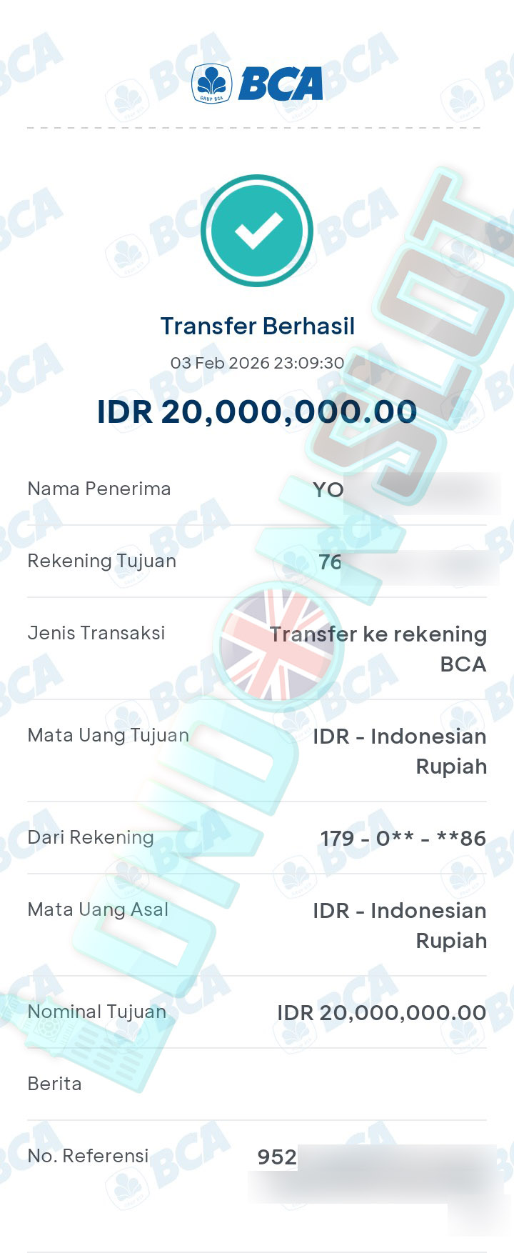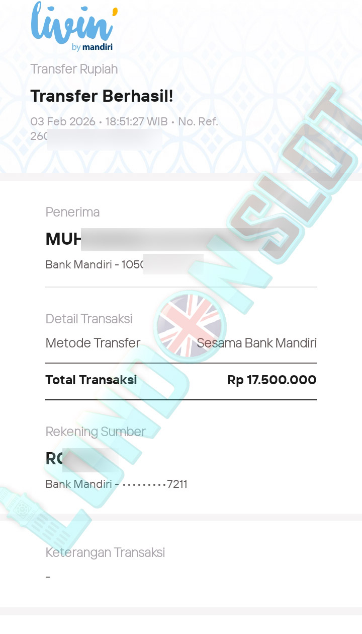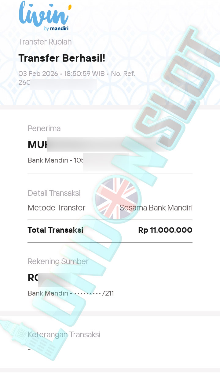 BUKTI TRANSFER JP LONDONSLOT